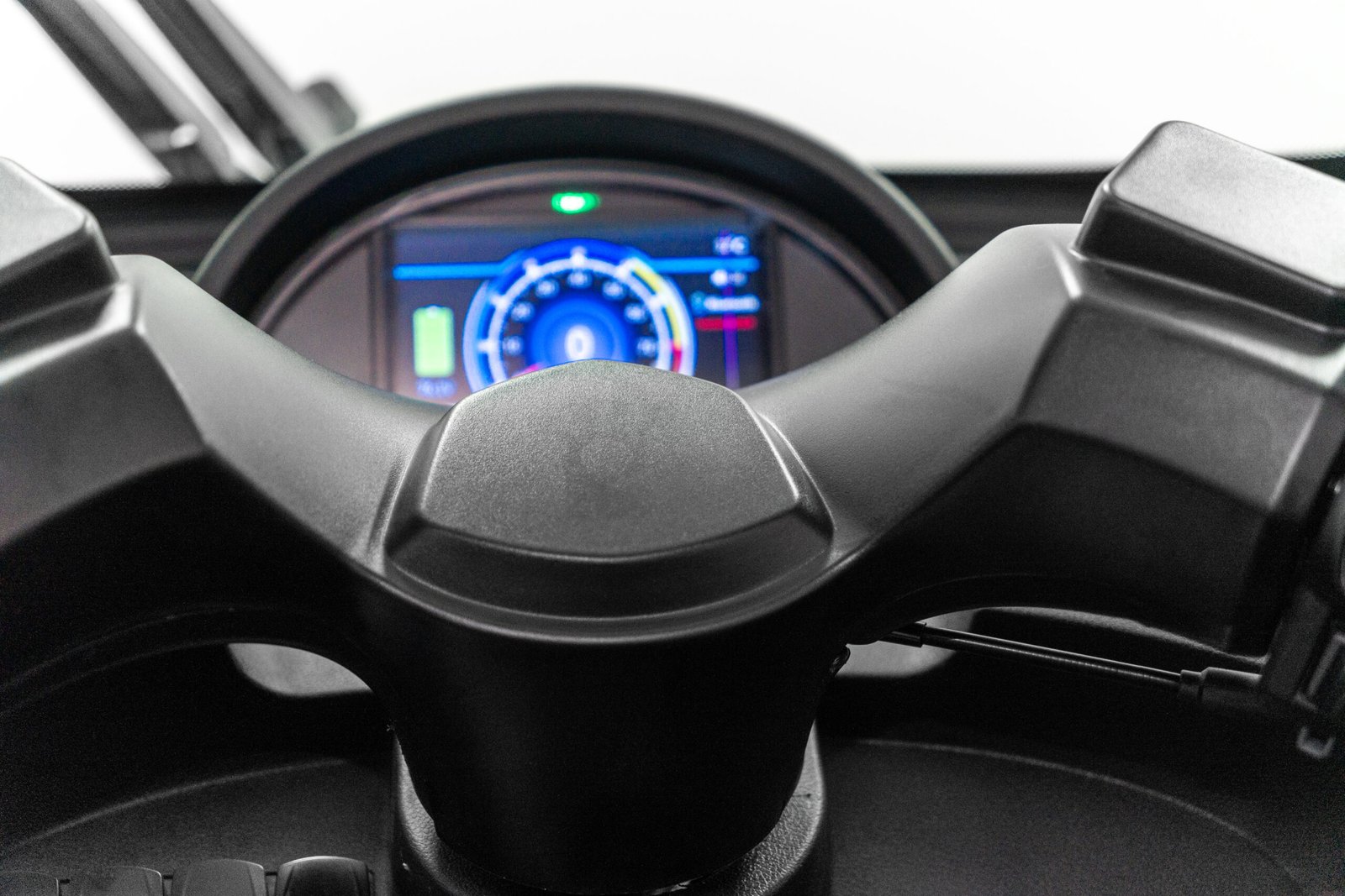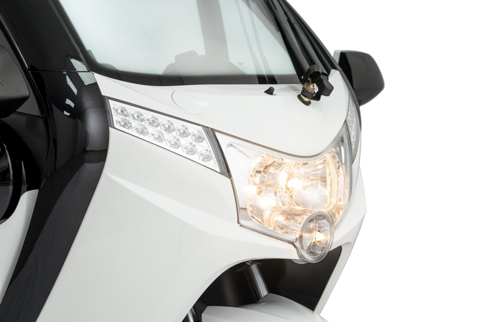 Specifically designed to address the needs of urban commuters, its compact enclosed design protects from the elements; airbags provide an added layer of protection; 250 mile range Lithium-ion battery relieves “range anxiety”.