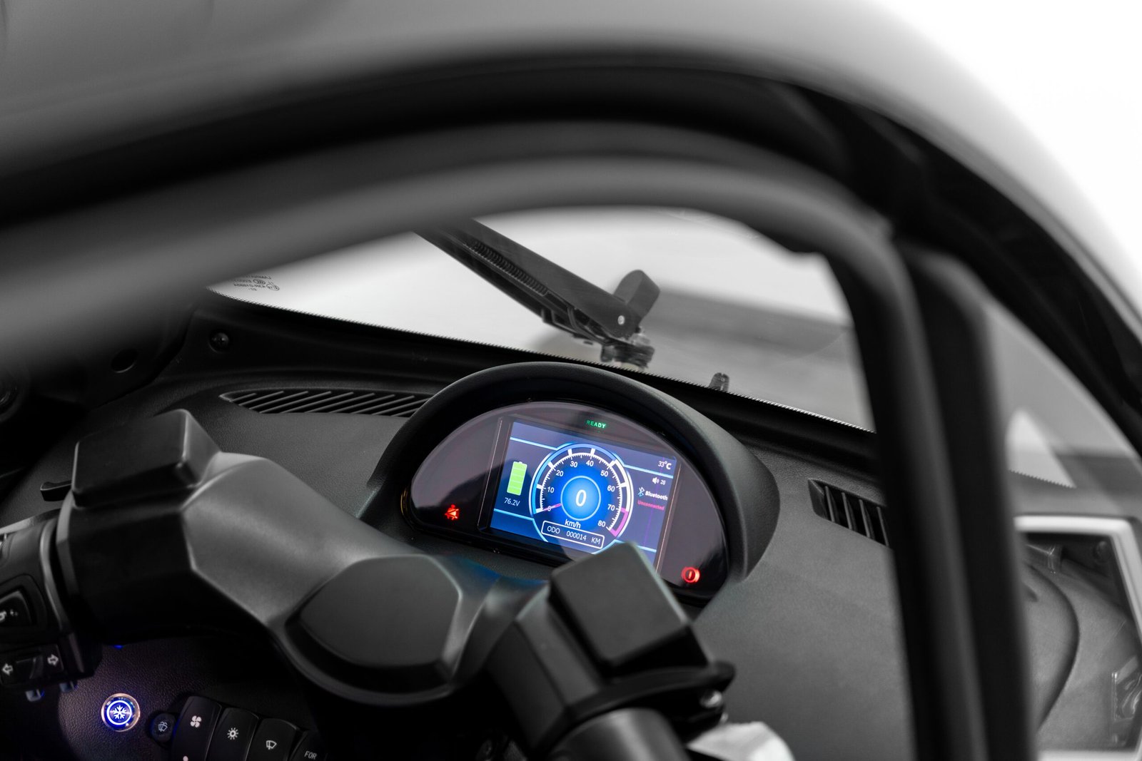 The optional 72V 308Ah Solid-state Lithium-ion battery provides 250-mile range relieves range anxiety”. The DC electric motor powers the Trifecta UCV™ to highway speeds with a slight twist of the throttle.